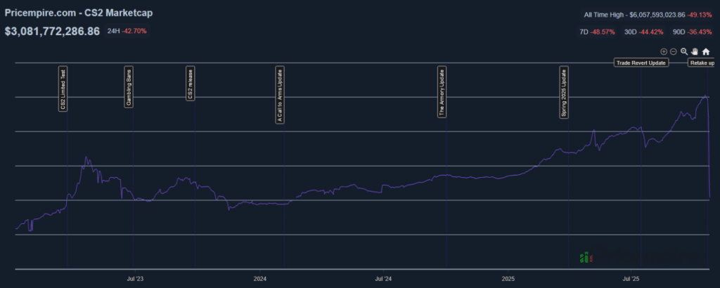 $2 bn was wiped off the Counter-Strike skins market cap in a single night, with the market falling by another $500m since yesterday.