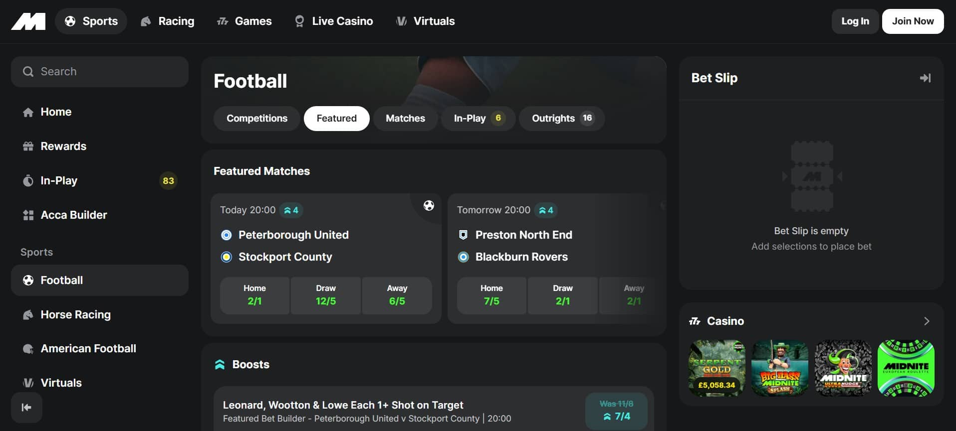 The site has a strong focus on accumulator betting and allows you to compile high-paying bets across multiple games and events. Accumulator-based features and offers drive this betting form, and options like Acca Boosts and Acca Rewards are available across the board.