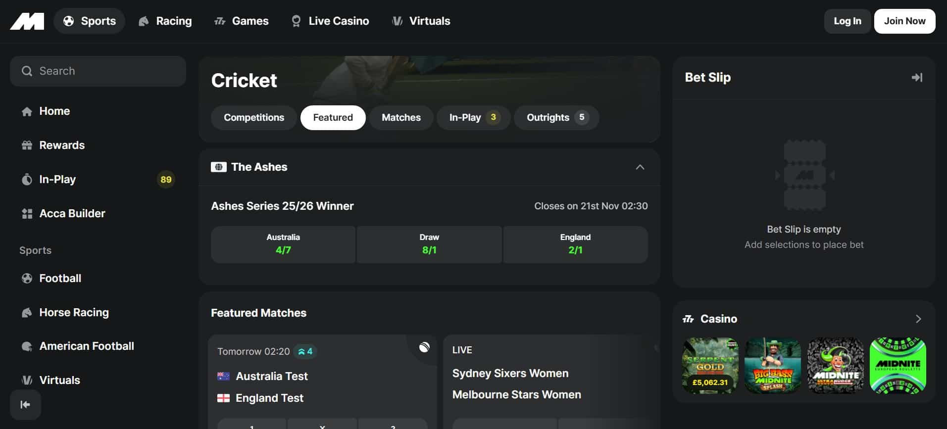 The broader in-play setup covers football, tennis, basketball, snooker, and more, with responsive odds and a layout that prioritises speed. The platform also includes pre-set accumulators, cash-out options, and smart market grouping that helps reduce faff when navigating during busy events.