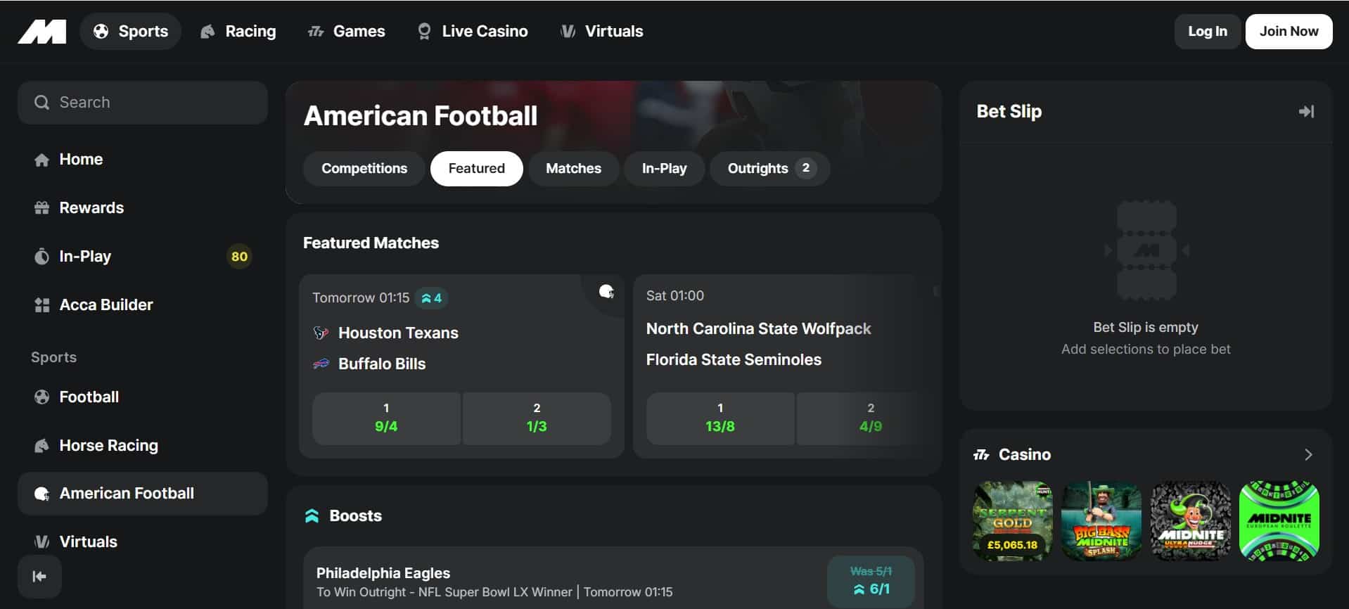 UK betting sites provide good options for local sports, but if you’re looking for a wider selection of international sports and events, a trustworthy offshore sportsbook like Midnite is a better option. Midnite has over 50 sports, allowing you to bet on popular UK events such as football and horse racing, as well as more niche sports like pesäpallo and sumo wrestling. The range of betting markets is remarkable, with more than 700 lines available for a single match, far surpassing what regulated betting sites can provide.