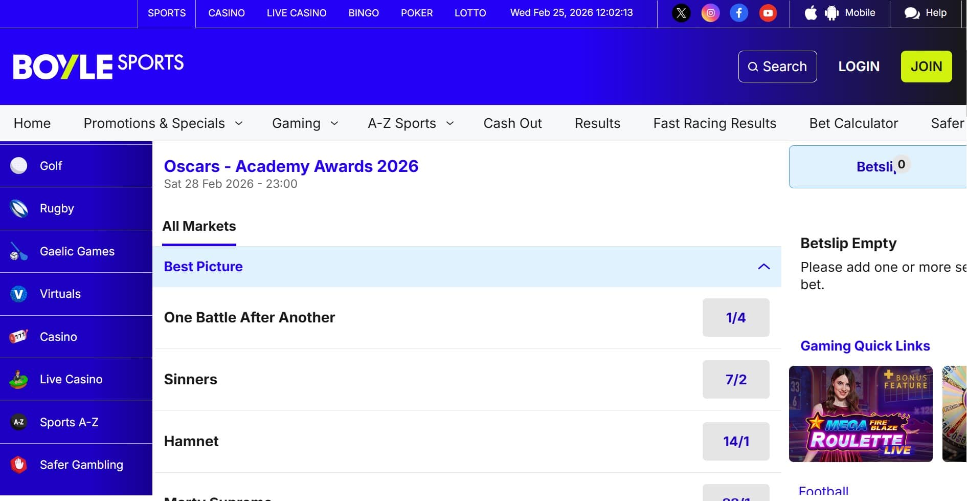 1. BoyleSports – Our #1 Oscars Bookie in the UK