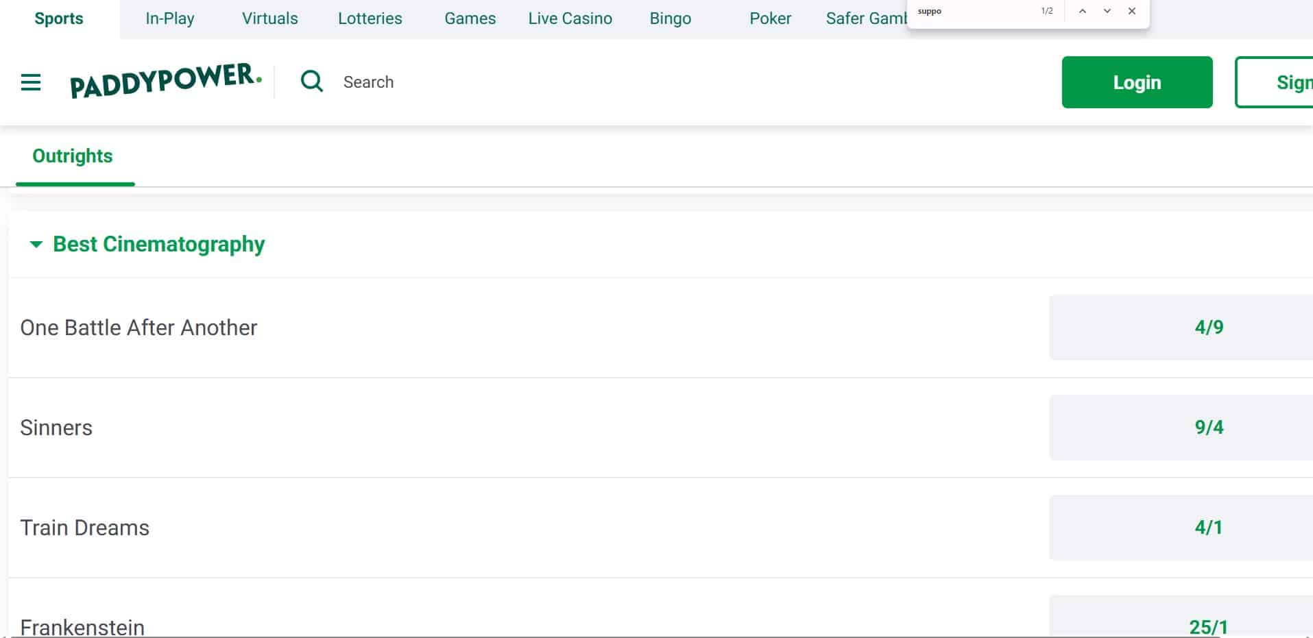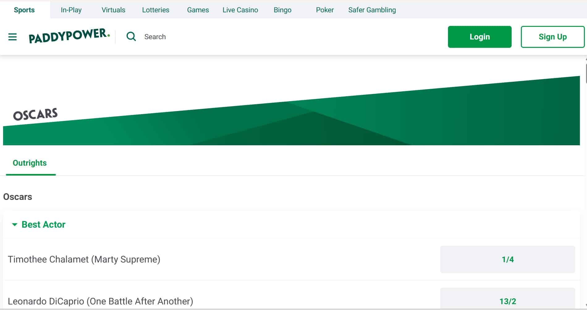 Feature Availability Oscars Betting Markets 35+ Early Oscars Odds ✅ Oscars Promos ✅ Partial Cash Out ✅ 3. Paddy Power – Best for Oscars Specials & Novelty Markets