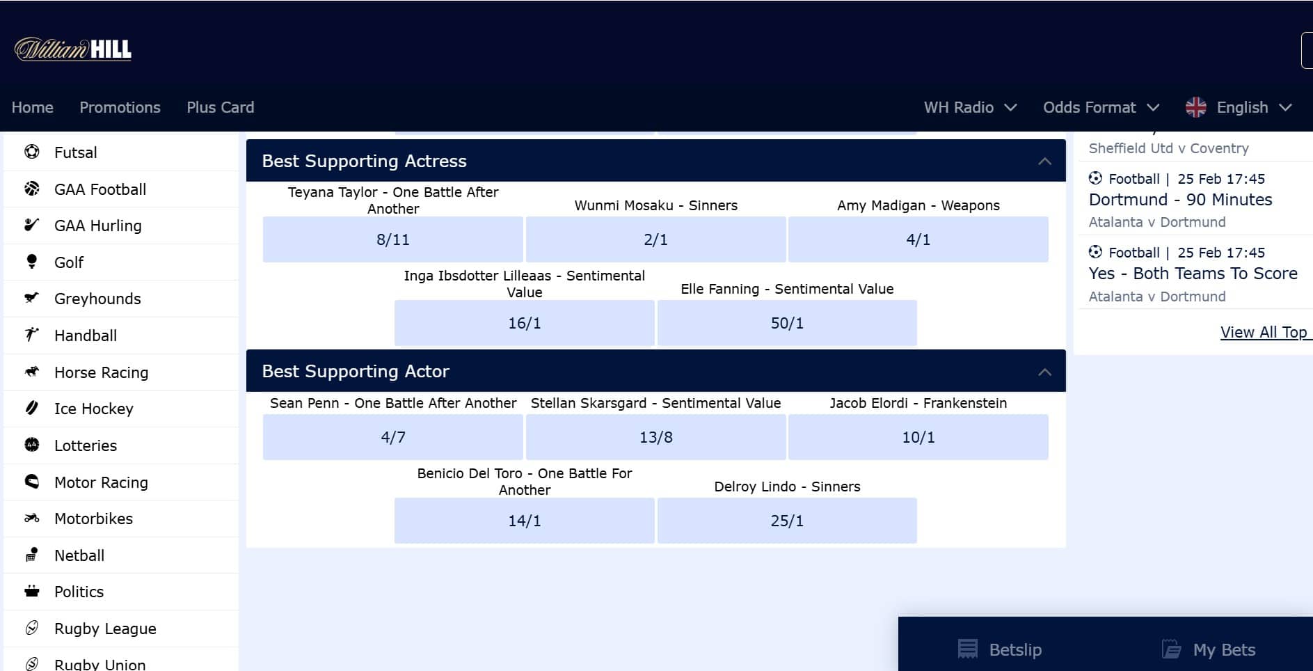 You also get promotions geared towards awards season, including welcome offers and price boosts on the big categories as the night draws closer. Live betting is spot-on as well, though you will need to be quick off the mark. Most betting markets get suspended the moment that envelope hits the stage.